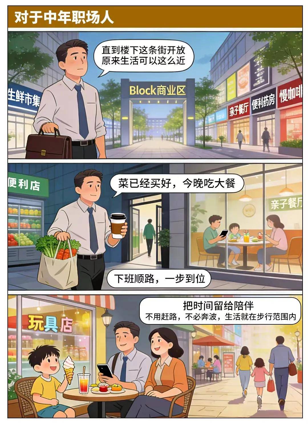 周末想带娃放松,楼下就能吃大餐、逛小店,不用堵在去市中心的路上,把通勤和赶路的时间,都留给陪伴家人。