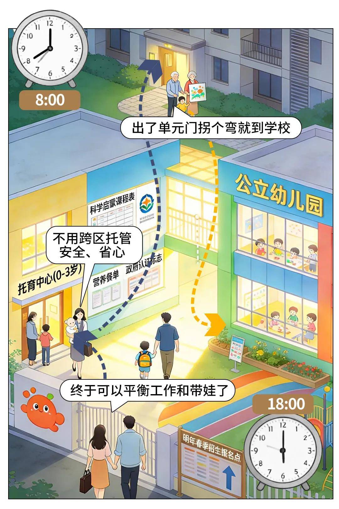 公立幼儿园明年就能招生,出了单元门拐个弯就到,不用早起赶校车、不用跨街摇号。
